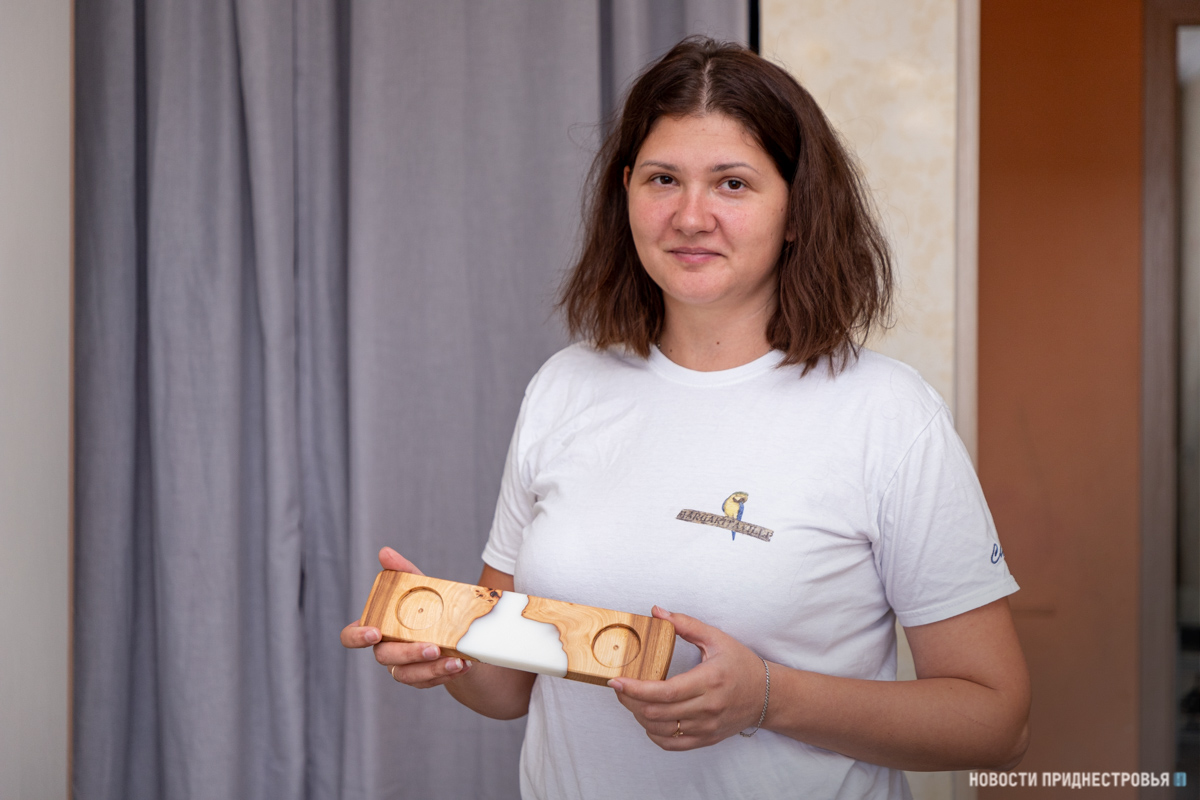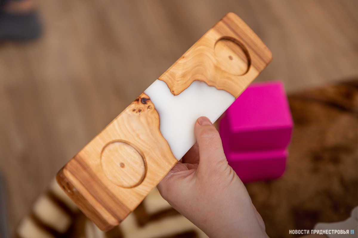 «Муж – мой помощник и генератор идей. Сейчас с его легкой руки мы начали делать новый вид изделий. Это деревянные дощечки, подсвечники. Сочетаем дерево с эпоксидной смолой», - рассказывает Лена.