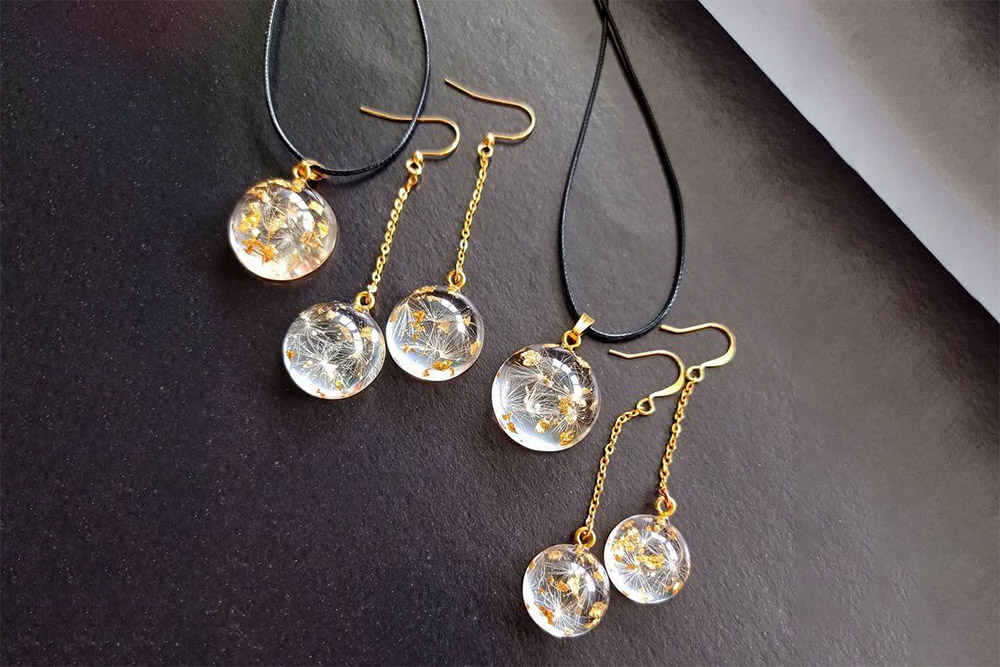 Но со временем она постигла все секреты этого ювелирного дела. Сегодня рукодельница профессионально запечатывает в вечности лето. Для этого специально выращивает цветы, которые сохраняют свою свежесть после слияния с эпоксидной смолой. К примеру, лепестки сирени или пушинки одуванчика не потеряют свою красоту еще долгие годы.