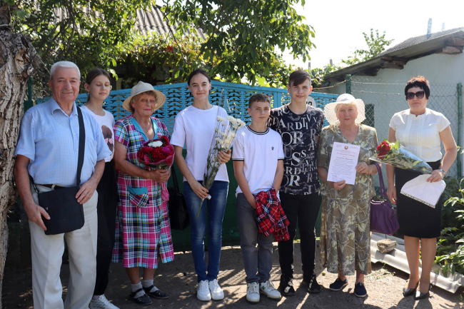 Председатель Дубоссарского Совета ветеранов войны, труда и Вооруженных сил Виктор Багнибов поздравил Софию Трофимовну и вручил имениннице благодарственное письмо, в котором особая признательность выражается ей за сохранение священной памяти о Родине и семье.