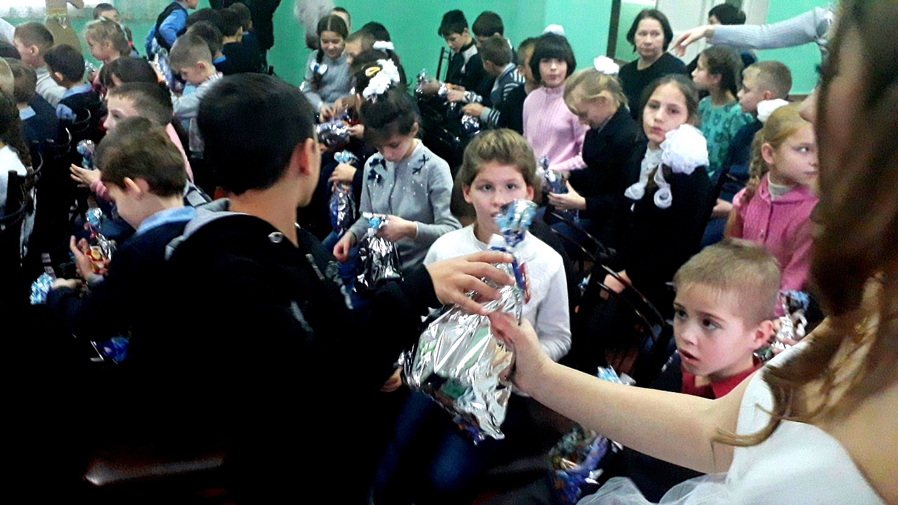 Также активисты молодёжного движения подарили детям сладкие подарки