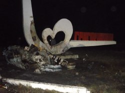 «Мерседес» на скорости врезался в стелу «Григориопольский район» и загорелся