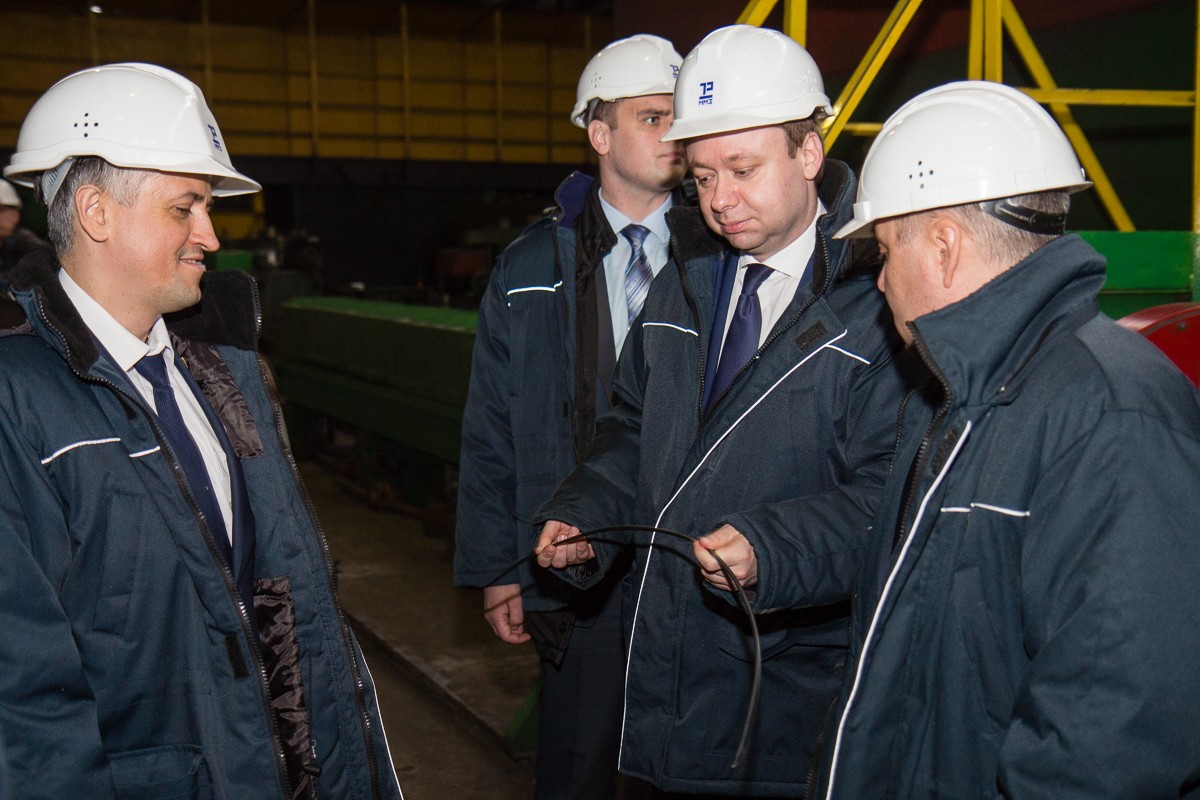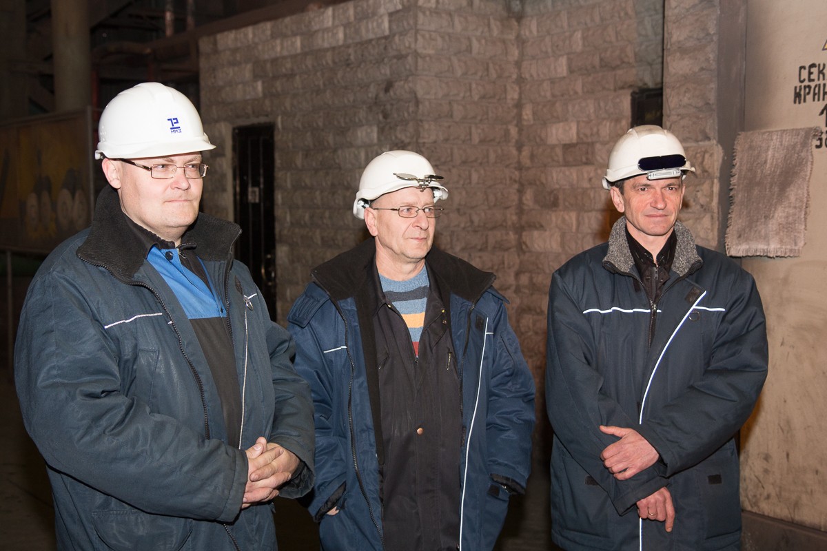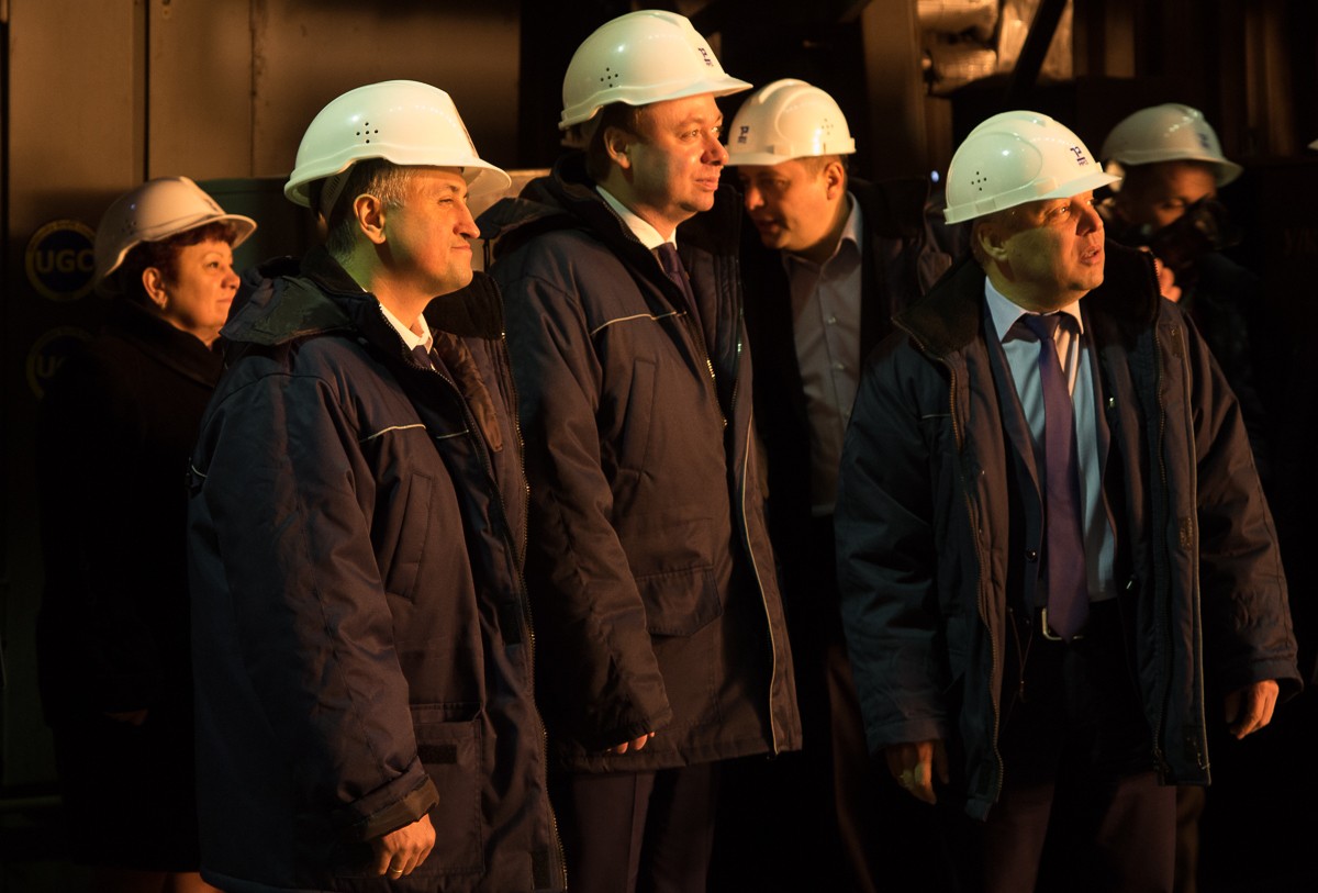 Вместе с новым гендиректором завода Сергеем Корневым они присутствовали при процессе выплавки стали и её выпуске. За одну плавку заводская печь – начальное звено в длинной производственной цепочке – «съедает» 140 тонн лома и при температуре 1680°C превращает его в кипящую жидкость.