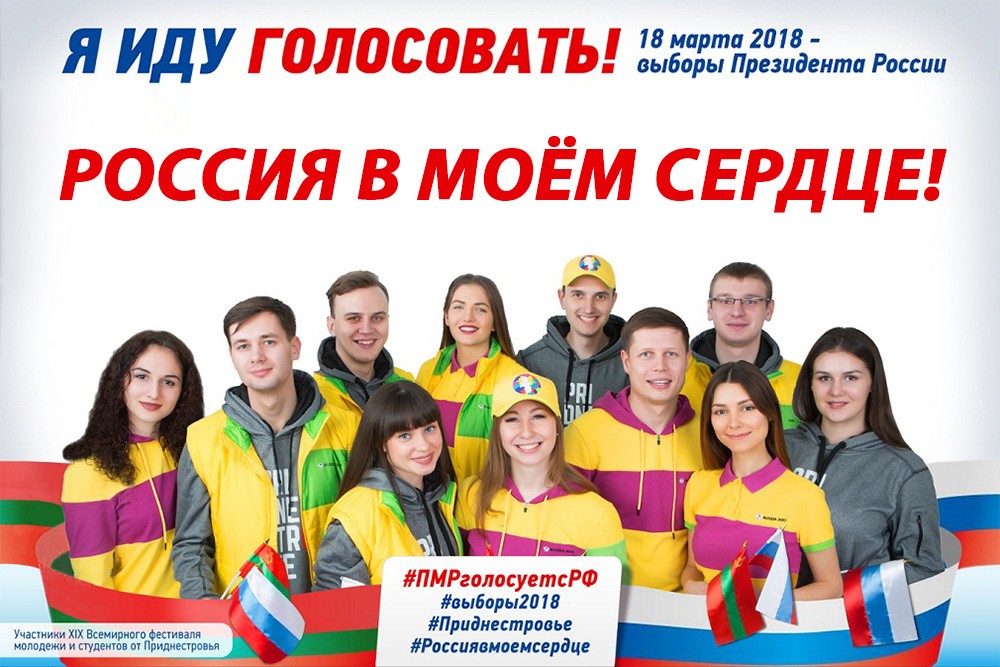 В республике стартовала кампания «Приднестровье голосует вместе с Россией. Россия в моем сердце!». Организатором акции выступили приднестровцы - участники XIX Всемирного фестиваля молодежи и студентов, прошедшего осенью прошлого года в Сочи.