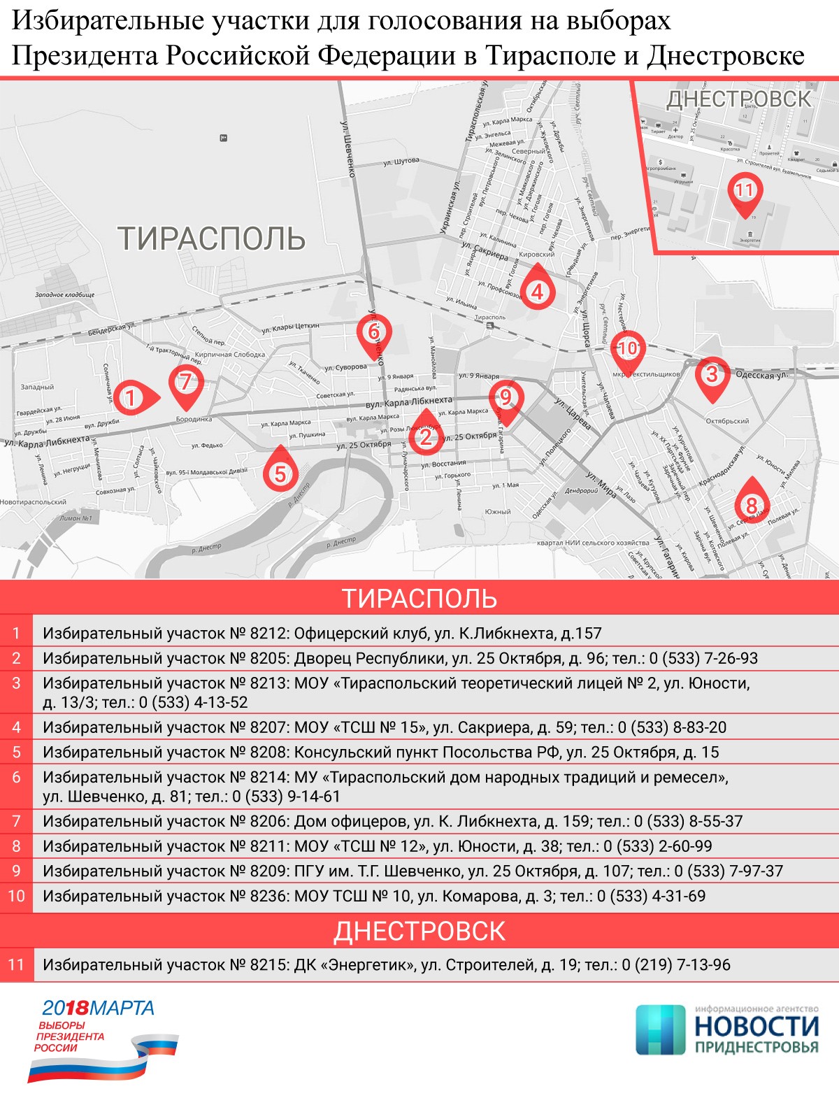 Тирасполь, 27 февраля./Новости Приднестровья/. Выборы президента Российской Федерации состоятся 18 марта. В нашей республике для удобства граждан России (а их порядка 200 тысяч) будут открыто 24 участка для голосования, что на 2 больше чем в прошлую избирательную кампанию.