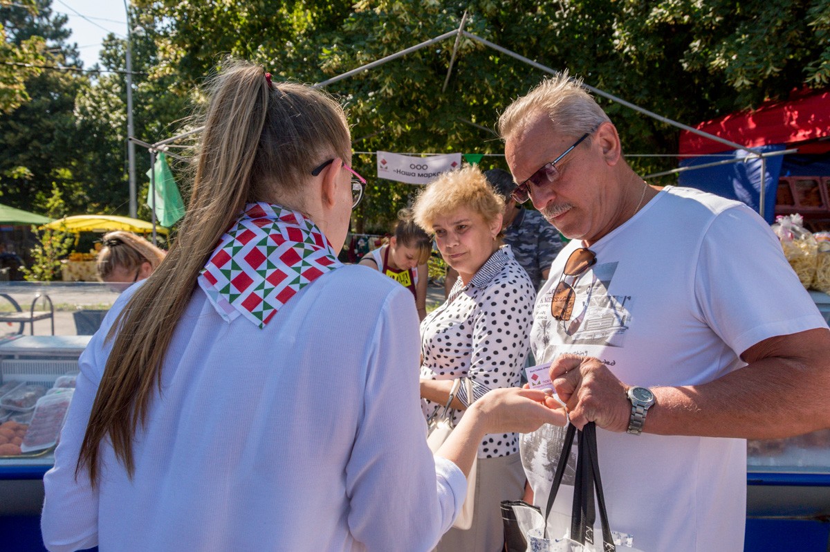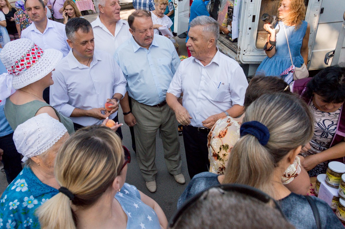 На этом официальная часть праздника закончилась. Всех посетителей ярмарки пригласили лично убедиться в качестве отечественных товаров. Василий Тищенко знакомил гостей города с местными предприятиями. Их угощали персиками и медовухой.