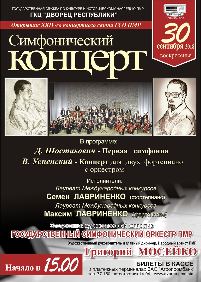 В воскресный день в большом зале Дворца Республики будут звучать произведения Дмитрия Шостаковича и Владимира Успенского. Именно композиции этих авторов откроют XXIV концертный сезон Приднестровского симфонического оркестра.