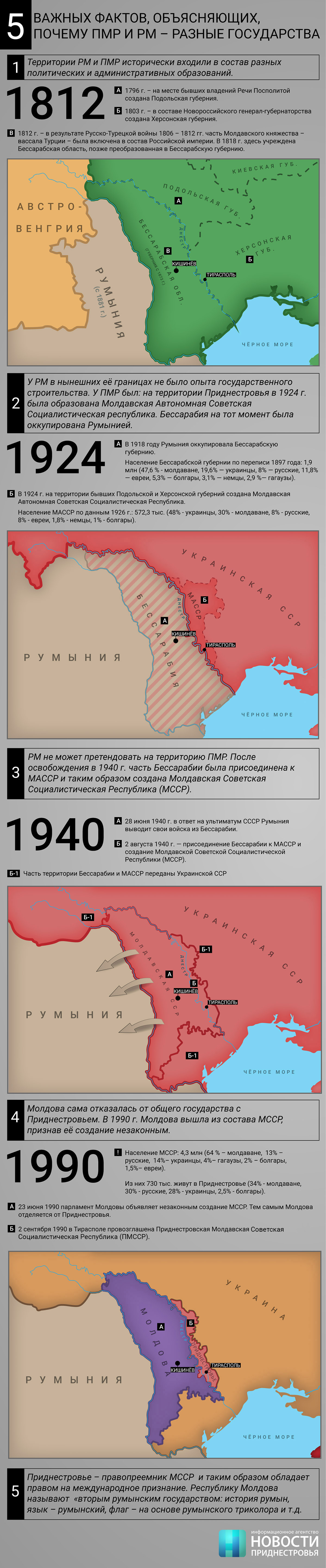 Совместное существование части Бессарабии и Приднестровья на протяжении 50 лет в составе одной союзной республики (МССР) и большой страны (СССР) так и не сблизило, не объединило два берега Днестра. Разница между Приднестровьем и Бессарабией в этнической структуре населения, в политической и культурной ориентации, мировоззрении, в ментальности не позволила Молдавской ССР за годы советской власти стать единым целым. Это проявилось сразу же с началом процесса распада Советского Союза.