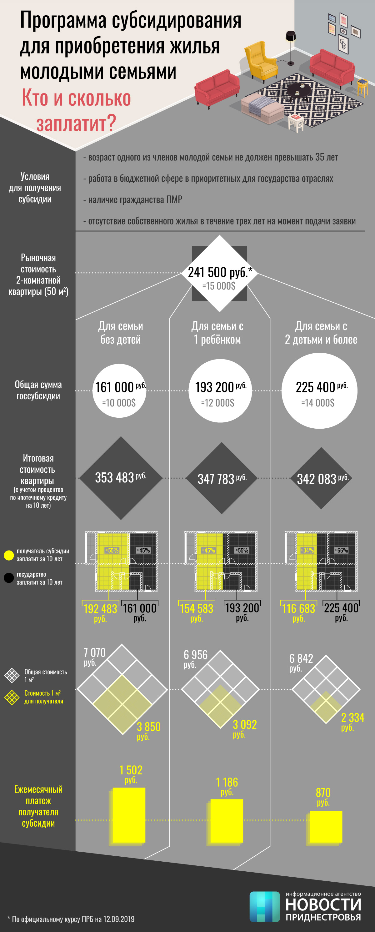 Тирасполь, 12 сентября. /Новости Приднестровья/. В ближайшее время Верховный Совет ПМР рассмотрит законопроект «О государственной поддержке молодых семей», разработанный Правительством. Речь идёт о госпрограмме субсидирования покупки жилья для молодых семей. О сути законодательной инициативы мы писали здесь.