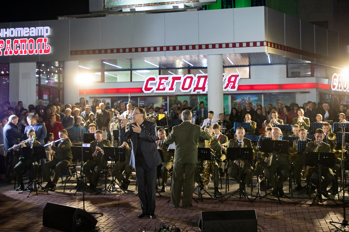 Ставшие уже традиционными вечерние концерты у фонтана всегда собирают много зрителей. Сегодняшний концерт не был исключением – сотни горожан не только наслаждались замечательным исполнением известных композиций солистами оркестра, но и подпевали, и танцевали.