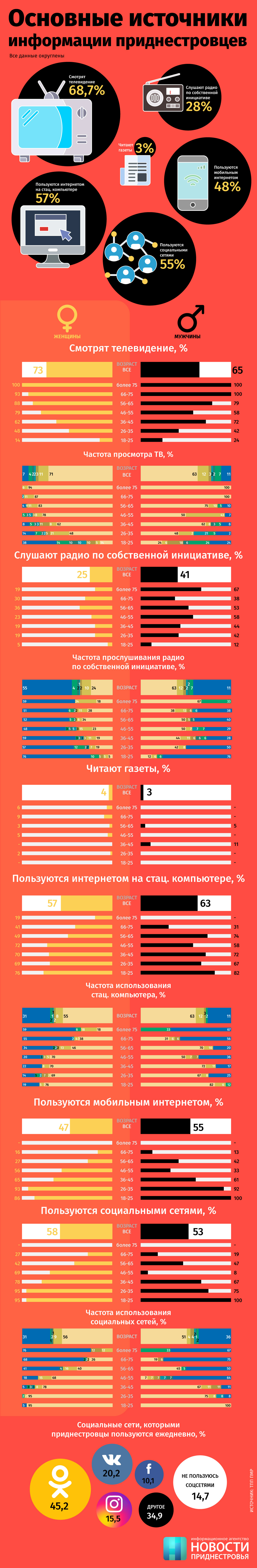 Тирасполь, 11 января. /Новости Приднестровья/. Маркетинговое управление Торгово-промышленной палаты провело исследование по всему Приднестровью и выяснило, какие средства получения информации пользуются популярностью у жителей республики.