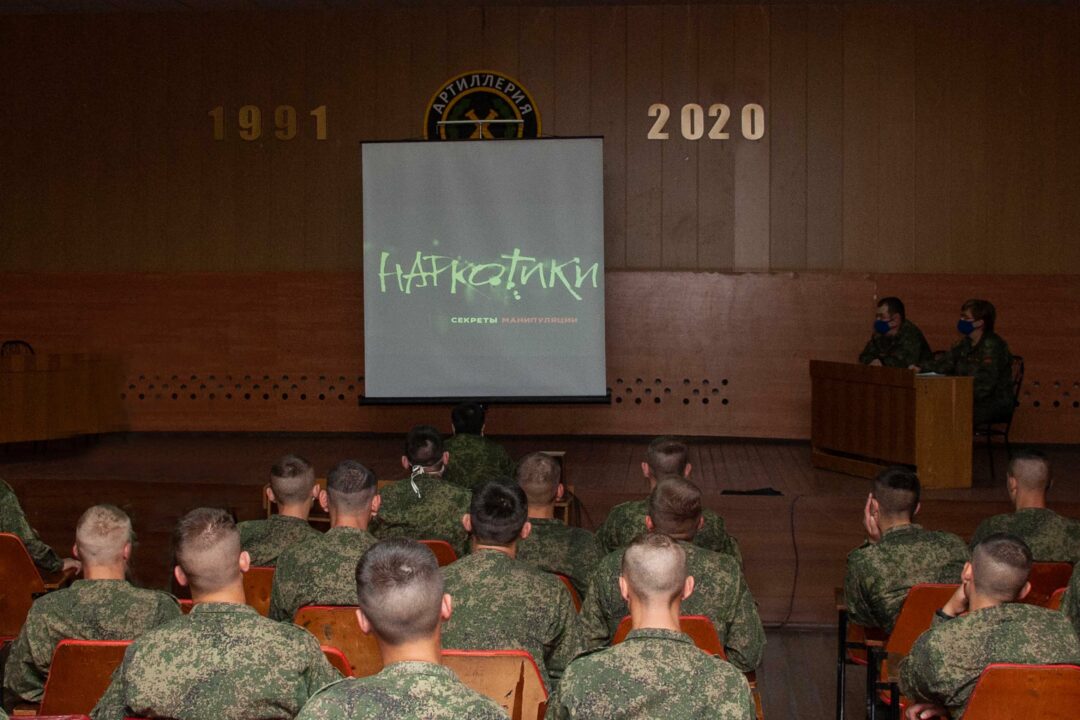 В этот день военнослужащим также показали документальный фильм об уловках наркодельцов и алгоритмах вовлечения в наркоманию.