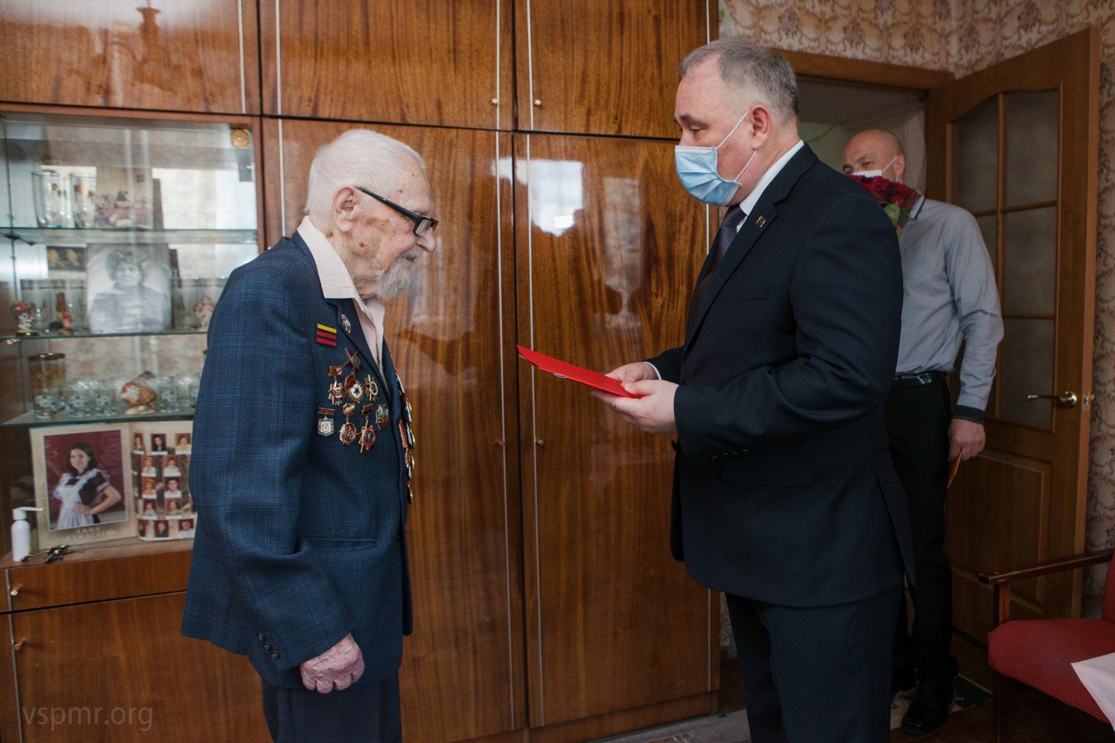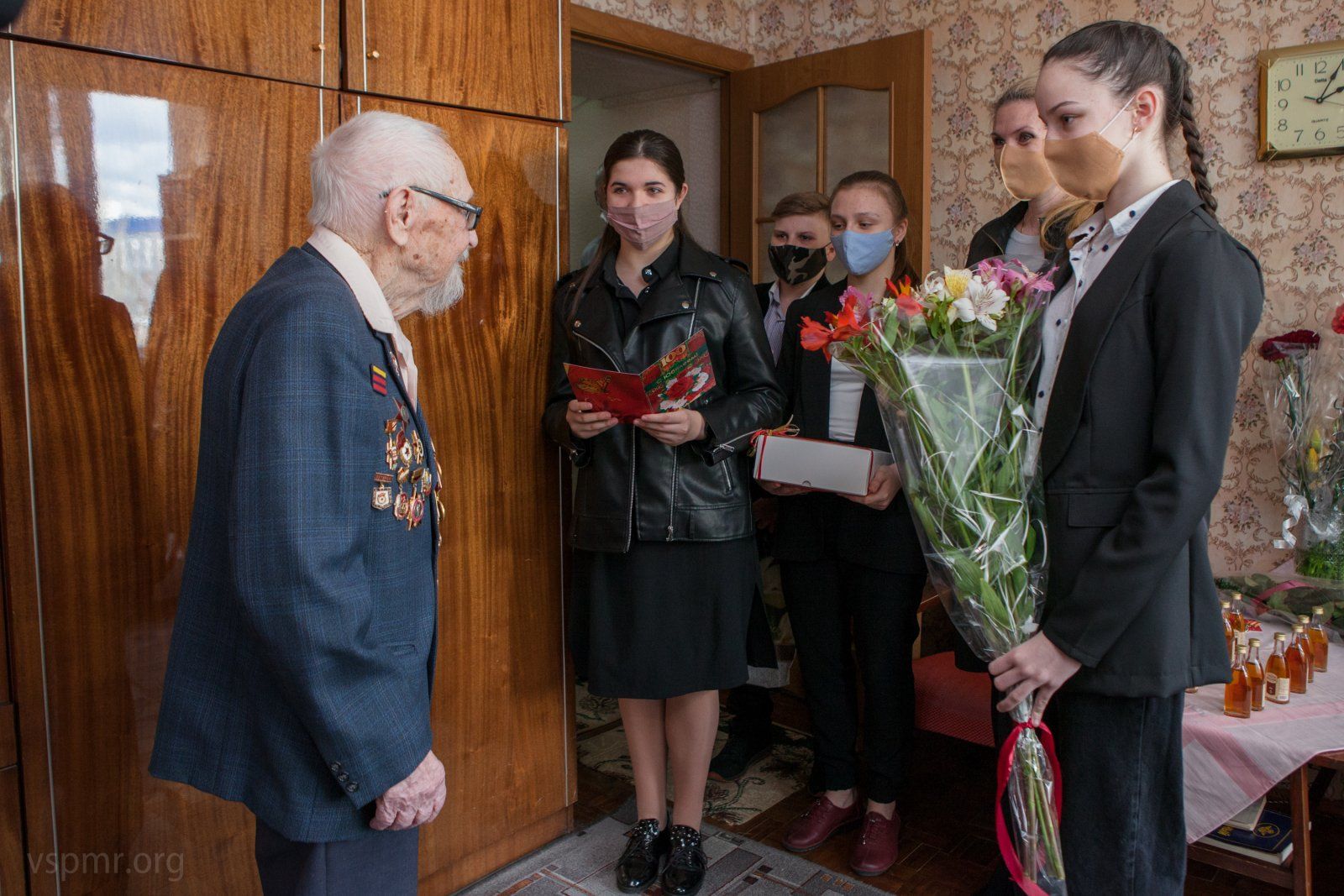 Сегодня фронтовика поздравили депутаты Верховного Совета и горсовета, глава Бендер и ученики бендерской гимназии