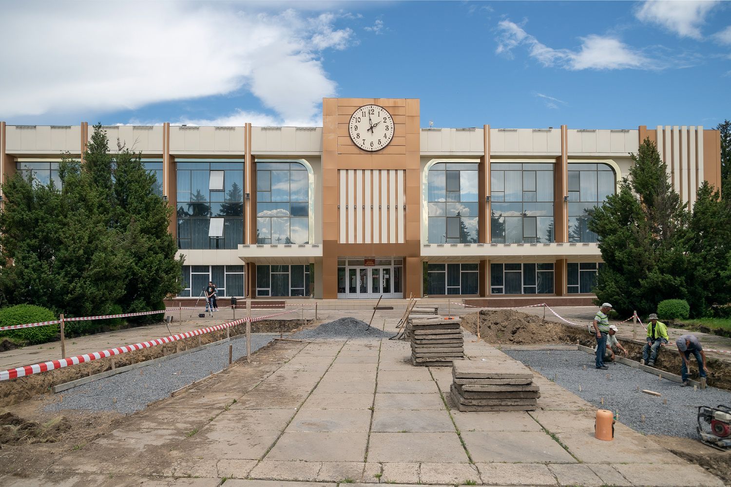 Глава государства, в частности, посетил центральную площадь города, которая не реконструировалась с 1977 года. Бетонное покрытие давно пришло в негодность, его поменяют на плиточное. Замощению подлежат 6753 квадратных метра. Уже начали демонтаж старого покрытия.