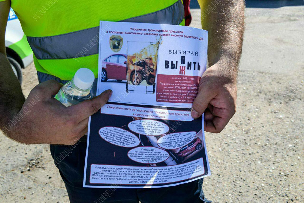 Тирасполь, 17 июля. /Новости Приднестровья/. Профилактическое мероприятие «Трезвый водитель» проходит по всей республике. Его цель – снижение количества «пьяных» ДТП. Сотрудники подразделений ГАИ Тирасполя, Григориополя, Каменки и Рыбницы провели беседы с водителями: рассказали о последствиях пьянства за рулём. Это касается управления транспортом в состоянии не только алкогольного, но и наркотического опьянения, сообщили в пресс-центре МВД.