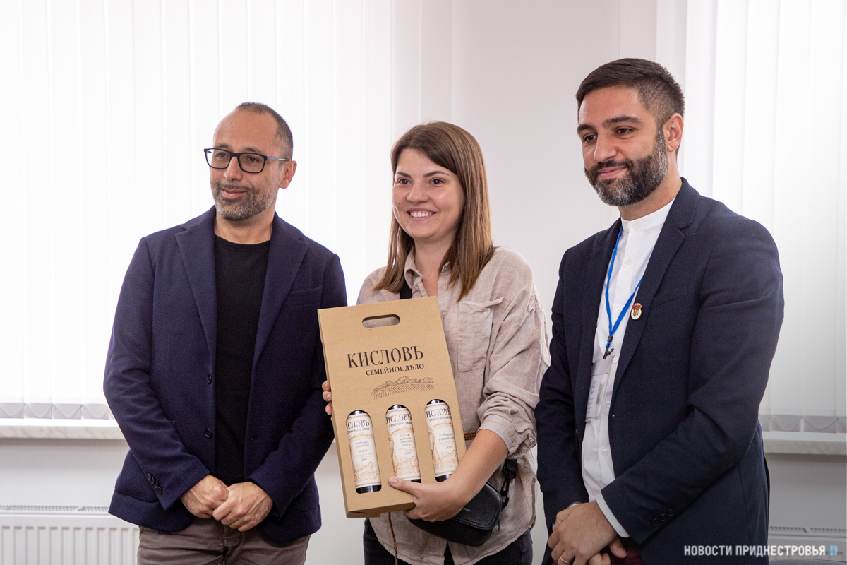 На встрече с итальянцами побывали представители винного хозяйства «Кисловъ». Они рассказали о своей семейной винодельне, которая находится в селе Гиска возле Бендер. В производстве используются новейшие технологии выращивания и переработки винограда. Специалисты сочетают инновации с вековыми традициями виноделия, вкладывая свою любовь в создание каждого нового вина. На память представители «Кисловъ» подарили итальянцам экземпляры своей продукции.