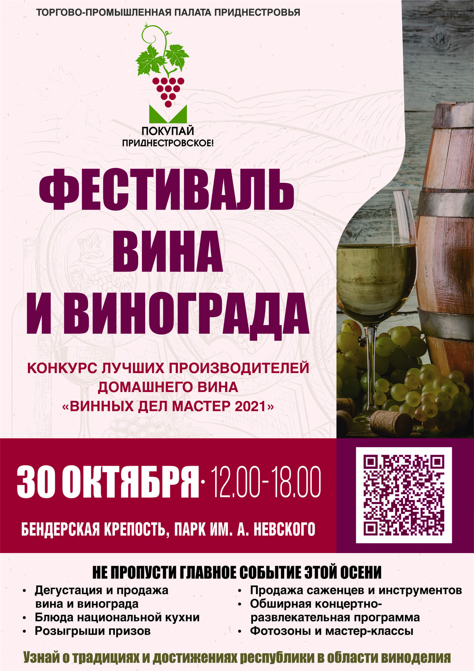 Бендеры, 29 октября. /Новости Приднестровья/. 30 октября в 12:00 в Александро-Невском парке Бендерской крепости пройдёт Фестиваль вина и винограда. Мероприятие состоится в рамках проекта «Покупай приднестровское!».