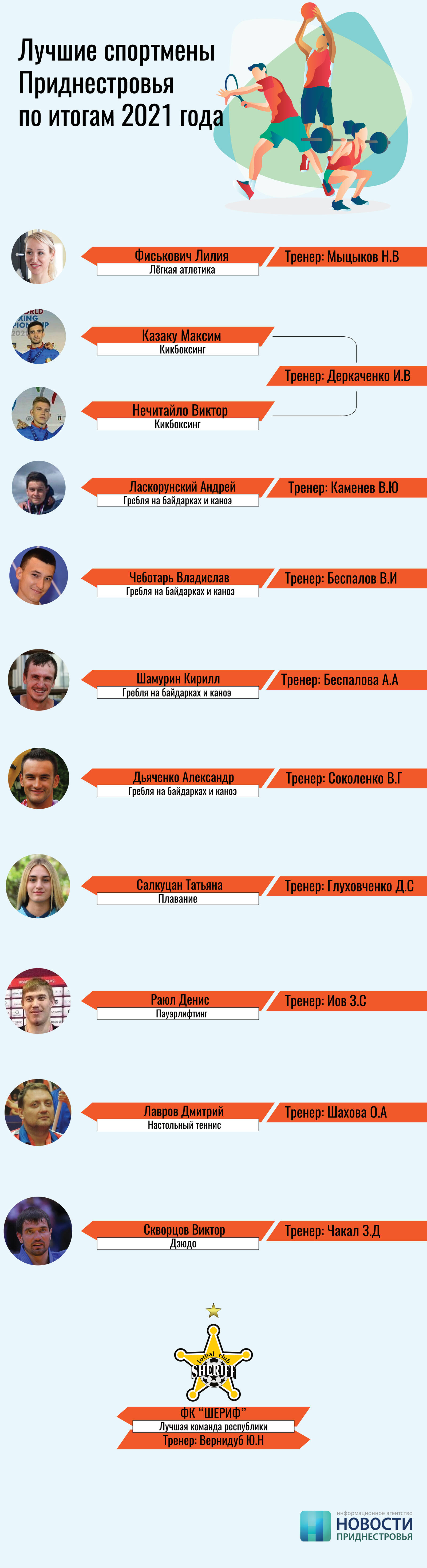 Тирасполь, 24 декабря. /Новости Приднестровья/. Государственная служба по спорту ПМР назвала лучших спортсменов по итогам 2021 года. В этот список попали представители гребли, лёгкой атлетики, плавания, дзюдо, кикбоксинга. В рейтинге и футбольный клуб «Шериф». Лучшими атлетами также признаны два параспортсмена.