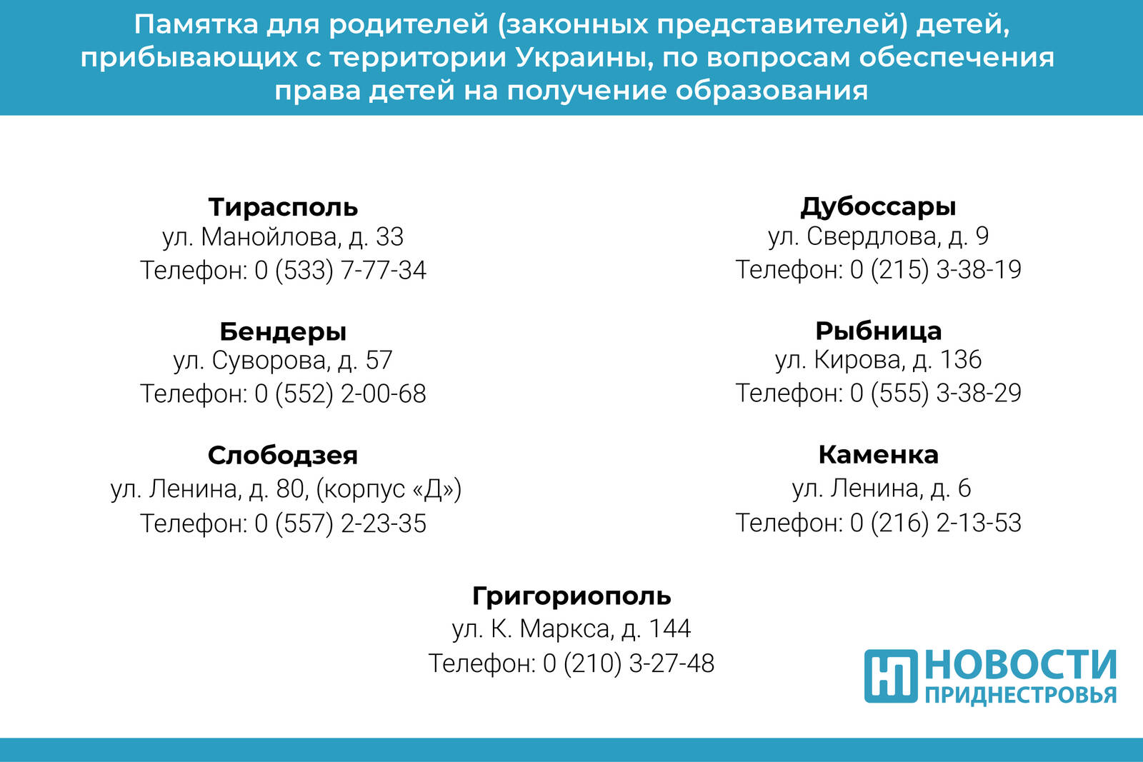 Тирасполь, 1 марта. /Новости Приднестровья/. Министерство просвещения выпустило Памятку для родителей (законных представителей) детей, прибывающих с территории Украины, по вопросам обеспечения права детей на получение образования.