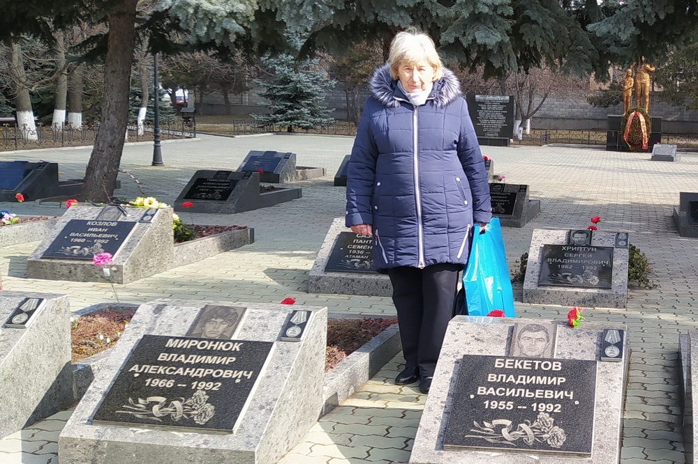 «Здесь похоронен брат моего мужа – Владимир Васильевич Бекетов. Родом он из Екатеринбурга. Прошел Афганистан и погиб, защищая Приднестровье. Здесь также похоронены наш кум, крестник и одноклассник – трое дубоссарцев, которые были убиты 2 ноября 1990 года. Вечная им память, вечная им слава – они были первые, мы будем помнить их подвиг», - рассказала жительница Дубоссар Томила Бекетова.