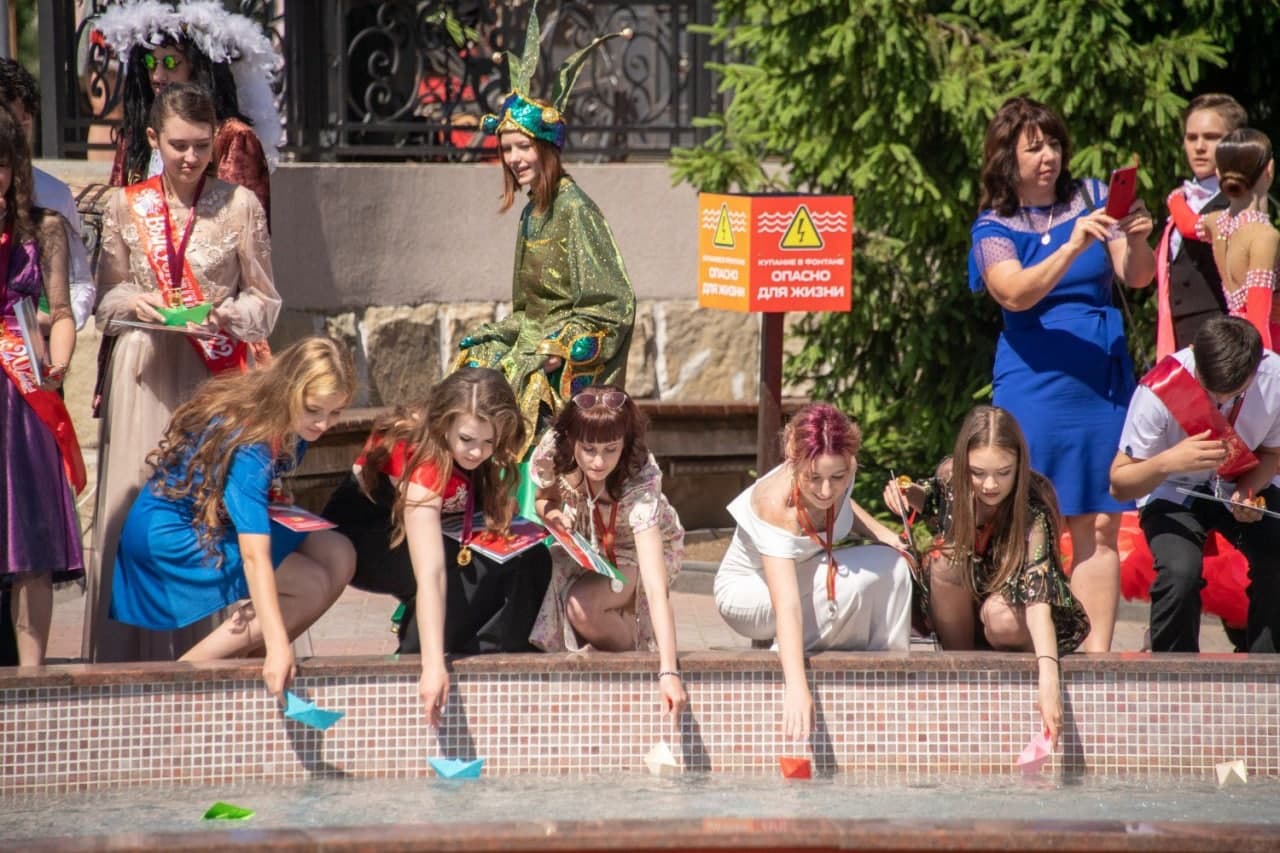 Как символ прощания с детством и переход во взрослую жизнь для всех выпускников сегодня звучал последний в их жизни школьный звонок. По традиции молодые люди вместе с гостями запустили в фонтан бумажные кораблики.