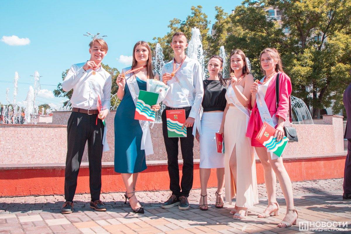 Тирасполь, 15 июня. /Новости Приднестровья/. Сегодня для выпускников, родителей и педагогов столичных школ, гимназий и лицеев торжественный и одновременно волнительный день. Красивые и счастливые, для участия в церемонии награждения золотых и серебряных медалистов, они собрались у фонтанного комплекса в центре Тирасполя.