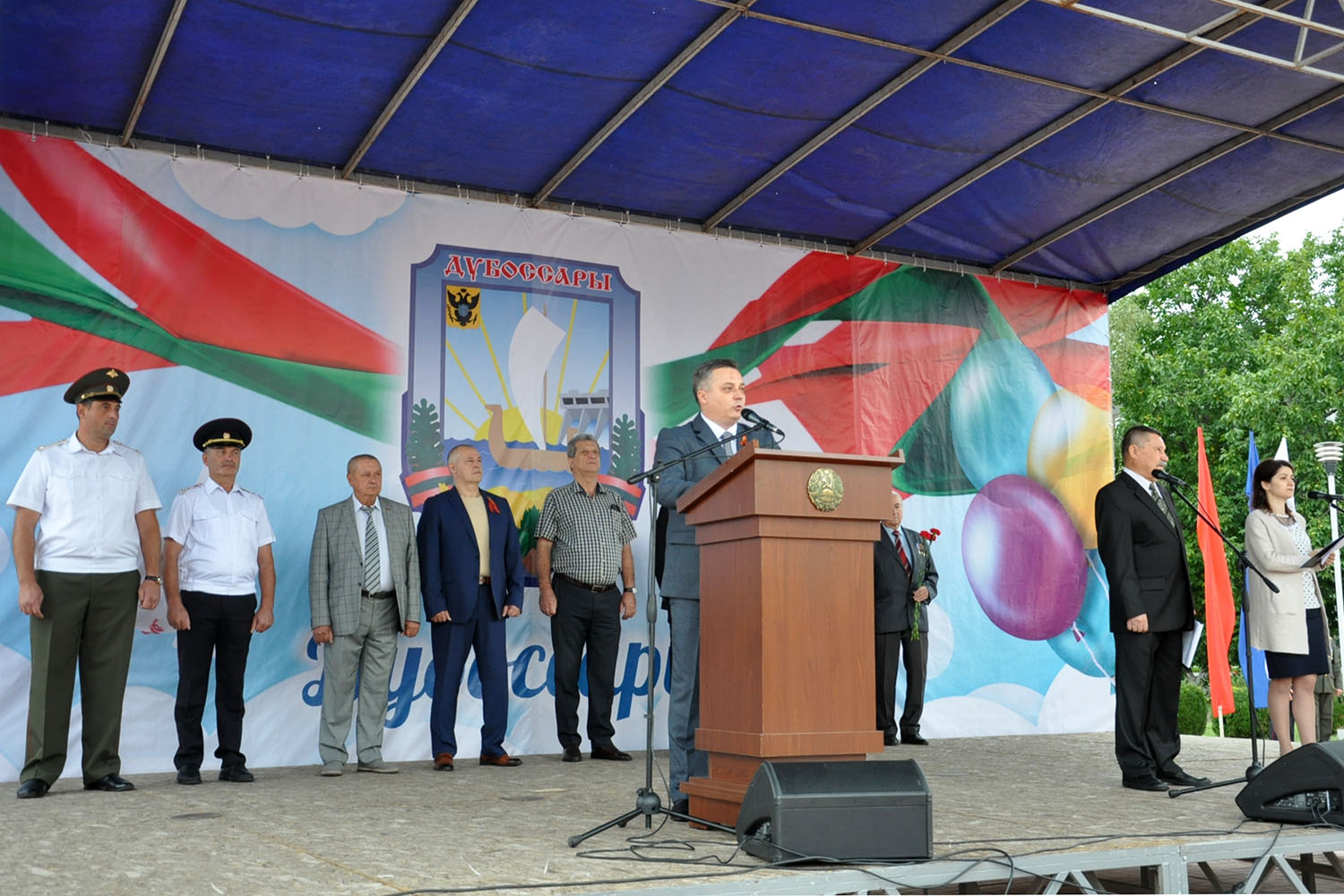 Торжественные мероприятия в Дубоссарах начались на площади Победы. По традиции право поднять флаги ПМР и города Дубоссары было предоставлено почетным гражданам, которые внесли особый вклад в создание и развитие государства. С 32-й годовщиной образования республики поздравило дубоссарцев руководство района. Глава госадминистрации Руслан Чабан отметил, в 90-е годы дубоссарцы плечом к плечу встали на защиту города и республики и смогли отстоять свое право жить на родной земле и говорить на родном языке.