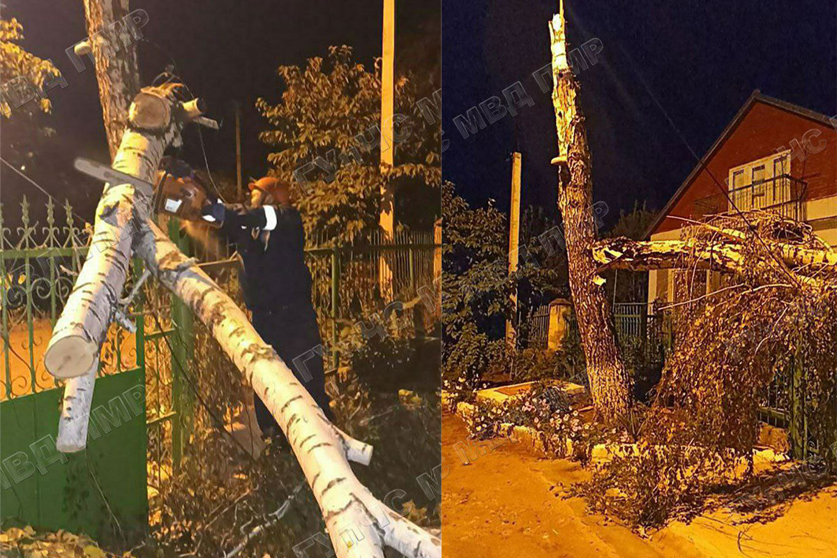 В Дубоссарах старая берёза упала во двор частного дома. Из-за этого были оборваны электропровода и повреждено около 15 метров газопровода. На место экстренно выехали спасатели и аварийные бригады коммунальных служб.