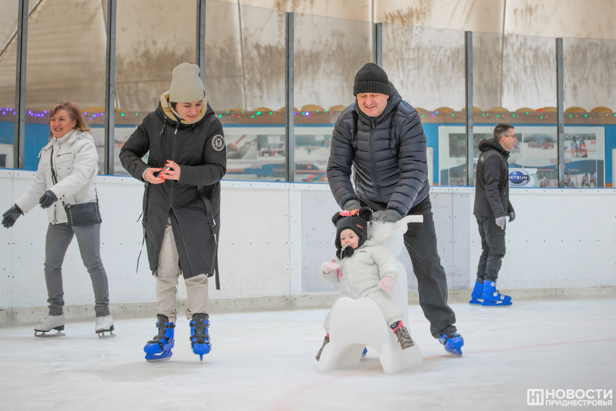 «Мы пришли с мужем, дочкой, сыном, с внуками. Самая маленькая из компании – внучка Маша, ей чуть больше года. Пока на коньки не ставим. Будем приучать ко льду, катая на санках. Мы очень рады, что открыли каток. Просто не могли дождаться. Мы ходили и раньше. Вся семья спортивная», – рассказала тираспольчанка Ольга.