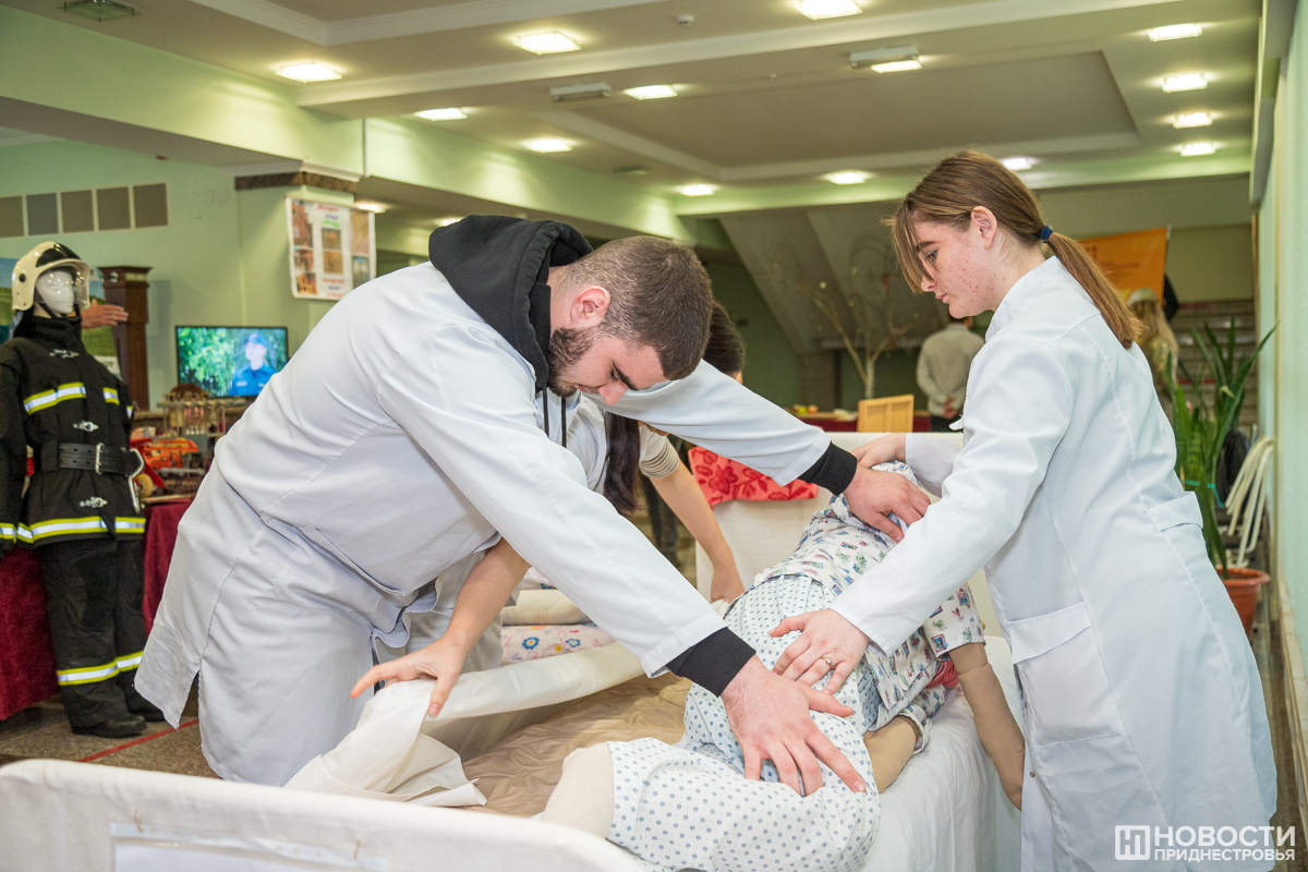 Студентка Приднестровского государственного медицинского колледжа целый день не отходит от больного. Её «пациенту» Старенькому Фёдору Ивановичу стало плохо.