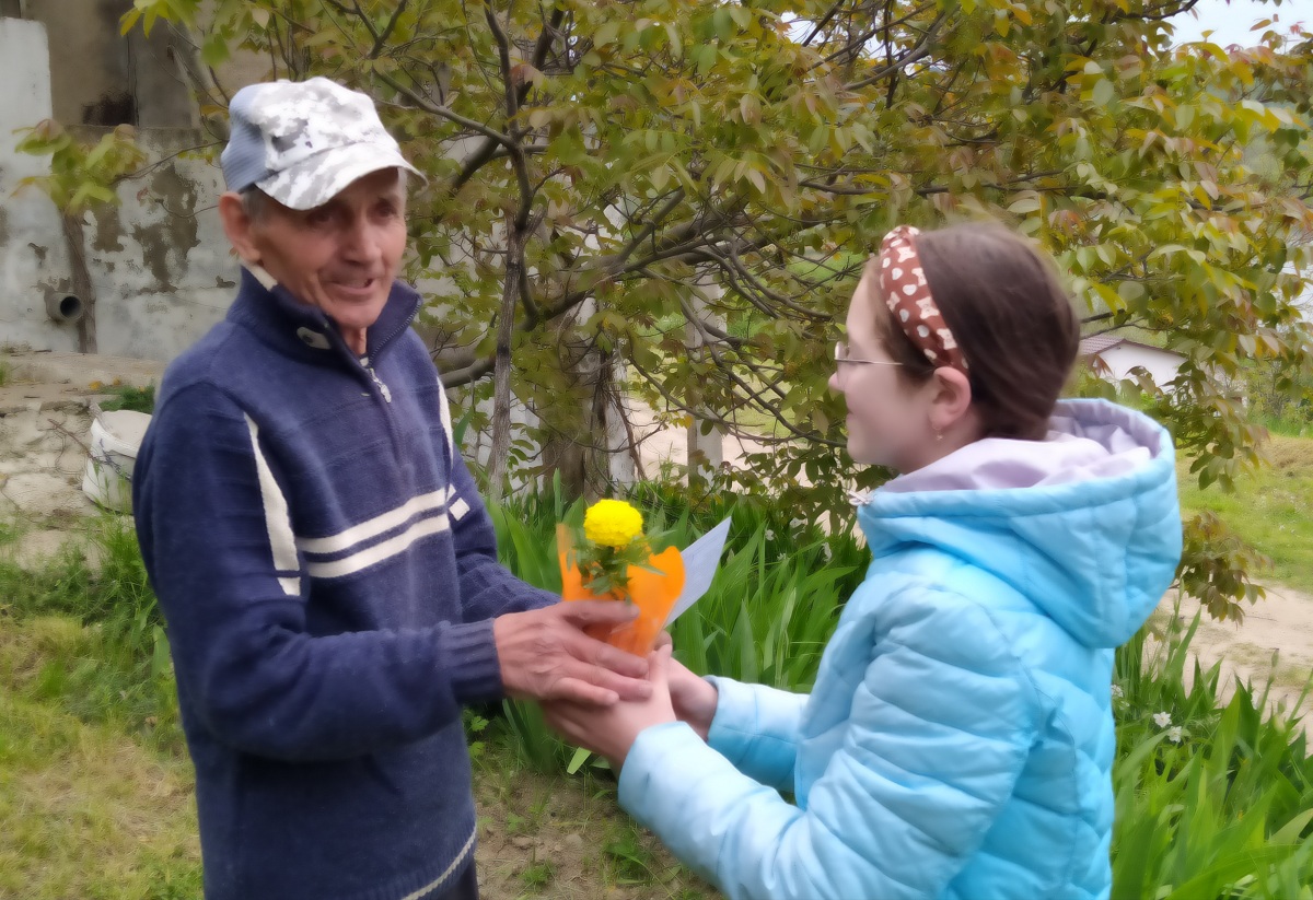 ​​​​​​​Ребята поздравили с наступающим Днём Великой Победы местных жителей