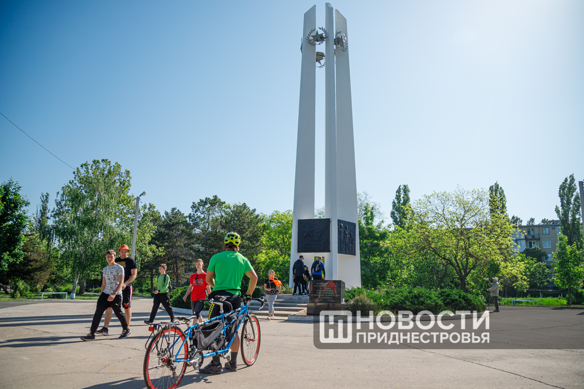 Бендеры, 4 мая. /Новости Приднестровья/. На бендерской площади Освобождения сегодня утром стартовал велопробег по местам воинской славы. Путь длиною в 15 километров преодолевали около 500 человек в память о героях Великой Отечественной войны.