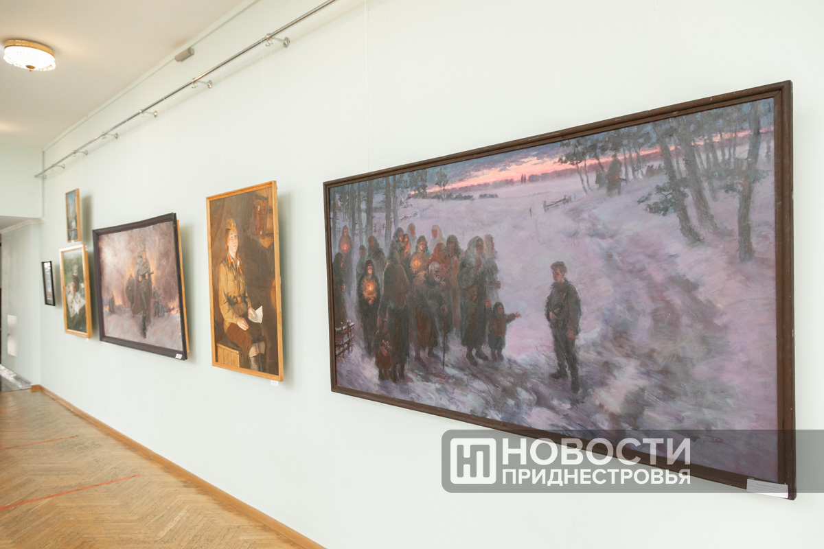 В фойе была организована тематическая выставка «Память поколений». Это работы студентов Бендерского высшего художественного колледжа им. В. И. Постойкина. Картины иллюстрируют героические сражения и передают атмосферу военных лет.