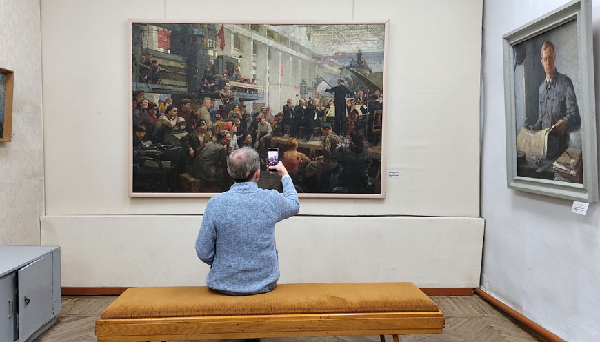В экспозицию вошли 85 произведений. Выставку условно можно разделить на две части. Первая – работы советских художников о войне, которые входят в музейный фонд.