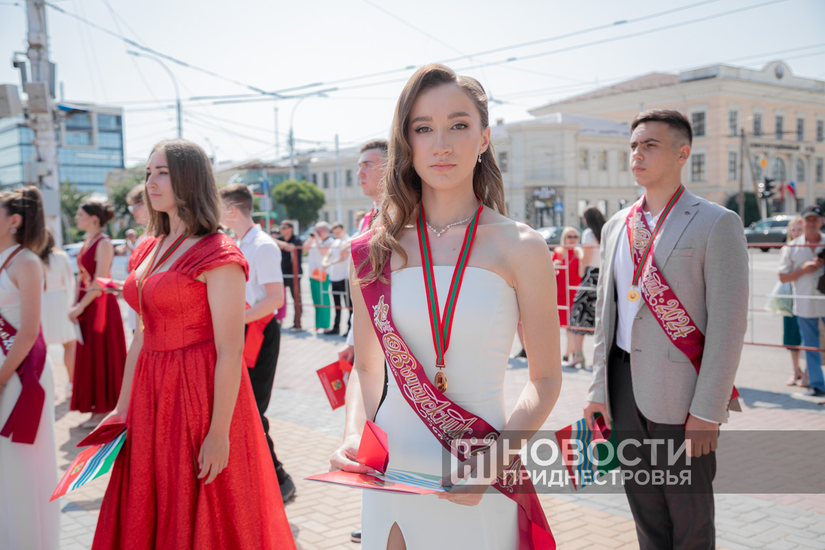 Тирасполь, 20 июня. /Новости Приднестровья/. Сегодня столичным выпускникам-медалистам вручили заслуженные награды. По красной ковровой дорожке прошли 66 обладателей золотых и серебряных медалей.