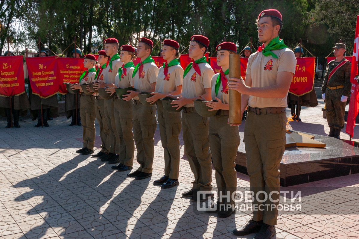 Отдавая воинские почести павшим при освобождении города, мимо Мемориала Славы прошли торжественным маршем суворовцы, подразделения Миротворческих сил, МВД ПМР и Черноморского казачьего войска.