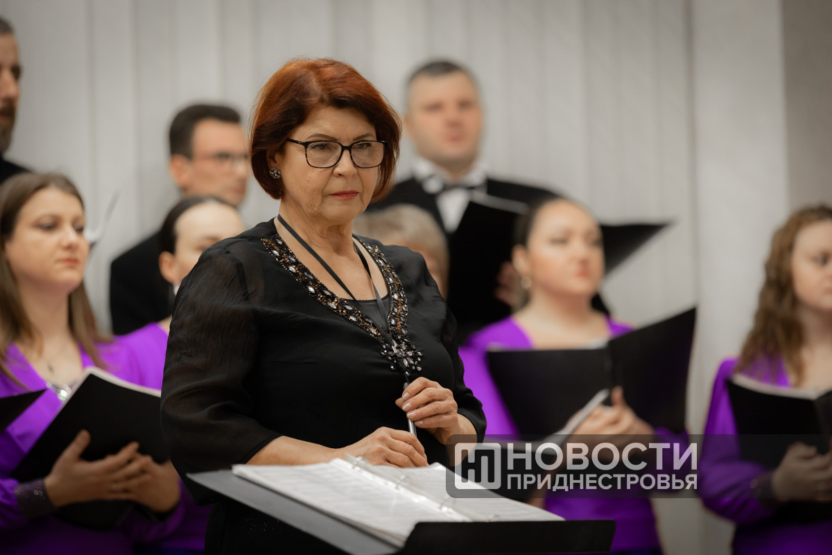 Художественный руководитель Приднестровского государственного хора Татьяна Твердохлеб рассказала, что особое внимание в концерте уделили творчеству Георгия Свиридова. В этом году исполняется 110 лет со дня рождения великого музыканта.