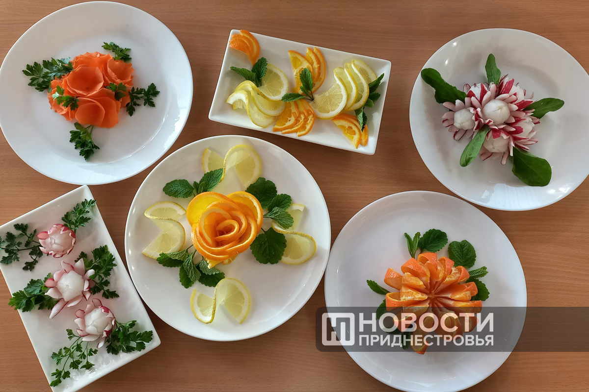 В поварское искусство погрузились учащиеся Дубоссарской гимназии № 1. Под руководством наставников-профессионалов они делали украшения из фруктов и овощей.