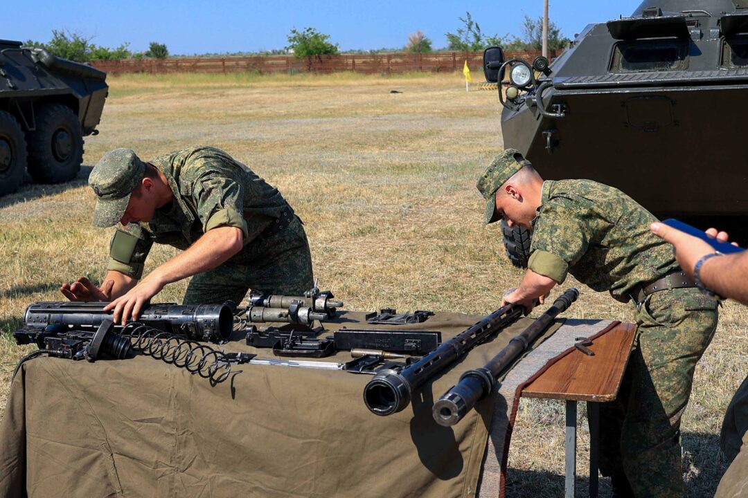 Мотострелки выполнили норматив по огневой подготовке: снятие вооружения БТР, неполная разборка КПВТ и ПКТ, сборка после неполной разборки КПВТ и ПКТ и его установка.