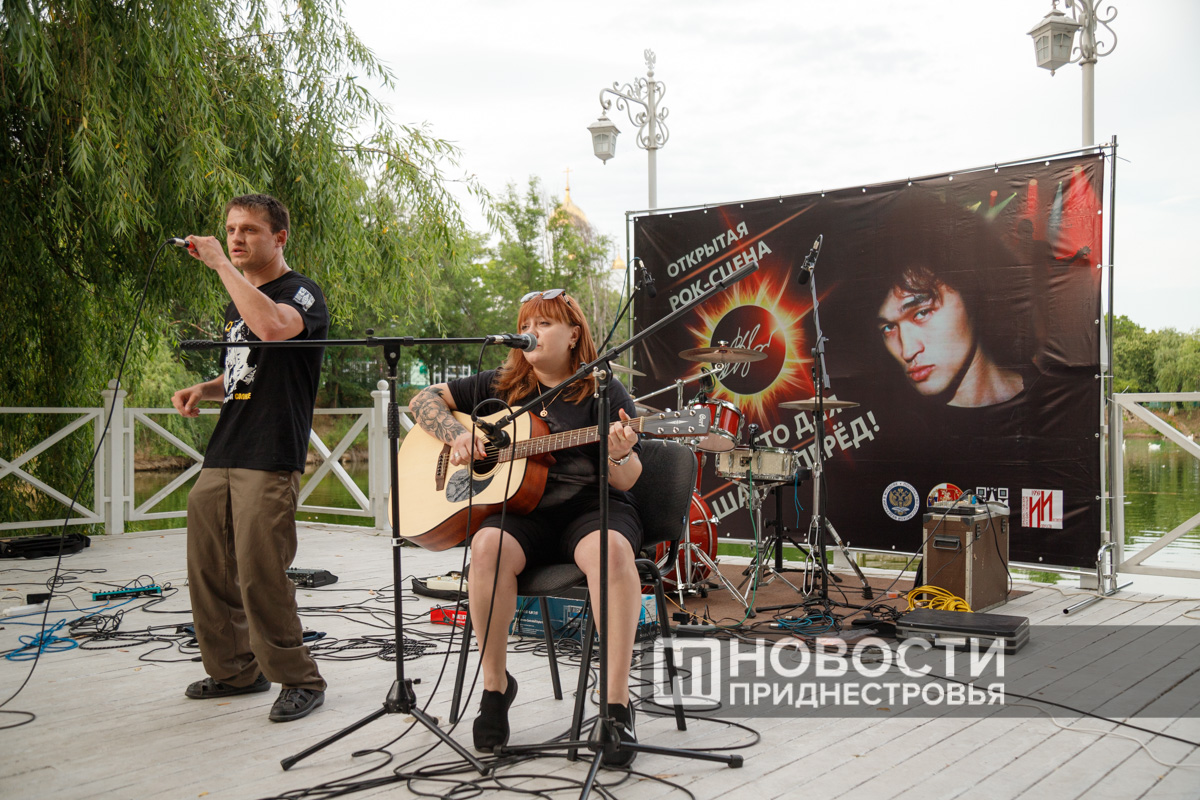 Тирасполь, 28 июня. /Новости Приднестровья/. Прошлым вечером на пирсе Екатерининского парка столицы вновь звучали гитарные риффы, барабаны и голос поколения. Там состоялся рок-концерт «Место для шага вперёд», посвящённый творчеству Виктора Цоя и легендарной группы «Кино». Событие объединило молодых исполнителей, кавер-группы и поклонников рока в рамках проекта «Открытый микрофон».