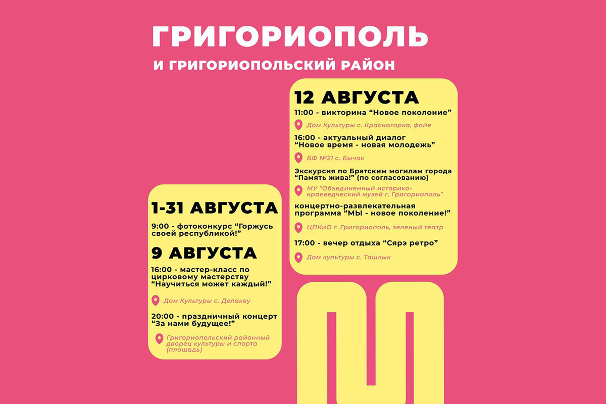 9 августа в 20:00 в Григориопольском районном Дворце культуры и спорта пройдет большой праздничный концерт «За нами будущее!».