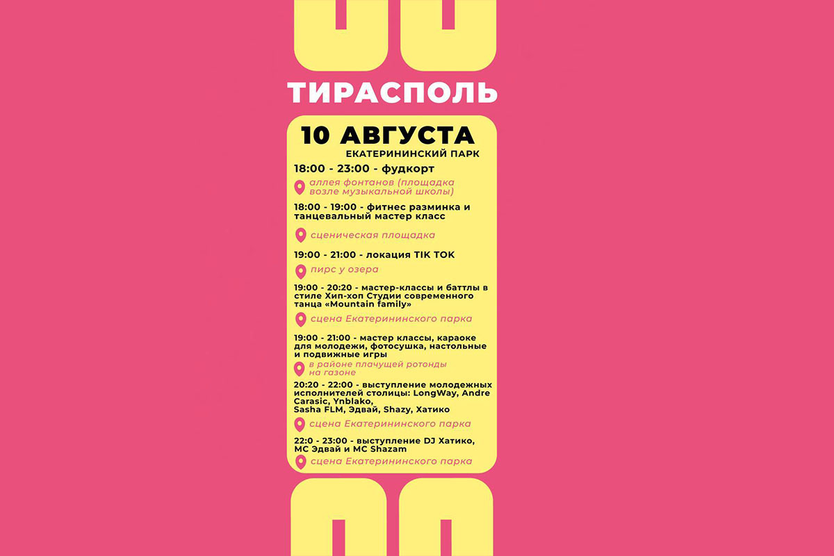 В 10:30 в Аркадном комплексе начнется open air «Приднестровье, молодость, движение».