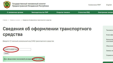 Тирасполь, 17 сентября. /Новости Приднестровья/. Государственный таможенный комитет ПМР запустил на своём официальном сайте новый сервис, позволяющий получить информацию о таможенном оформлении транспортных средств по VIN-коду.