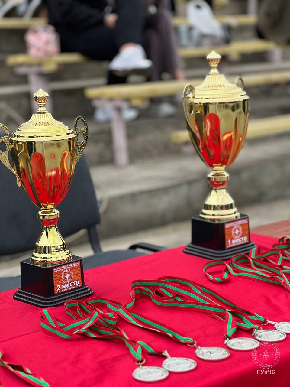 У пожарных сегодня была эстафета и боевое развёртывание, у спасателей – только эстафета.