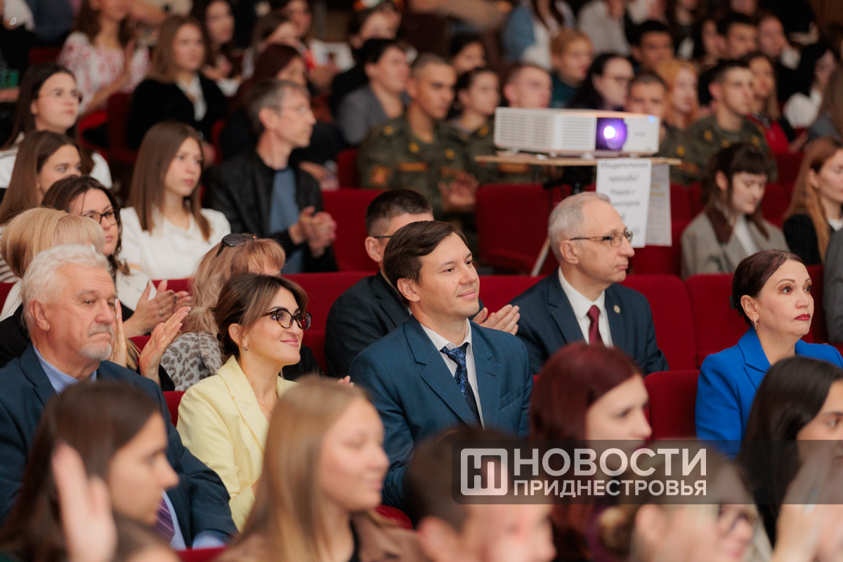 «Главный вуз страны по праву считается флагманом отечественного образования и науки, хранителем духовных и интеллектуальных традиций Приднестровья. За почти вековую историю университет воспитал не одно поколение профессионалов, учёных, общественных деятелей и лидеров, которые внесли весомый вклад в развитие нашей республики. Убеждён, особую значимость форум приобретет в контексте задач по укреплению общности приднестровский народ, развитию науки и образования, сохранению преемственности и наших ценностей», - говорится в приветственном адресе главы государства.