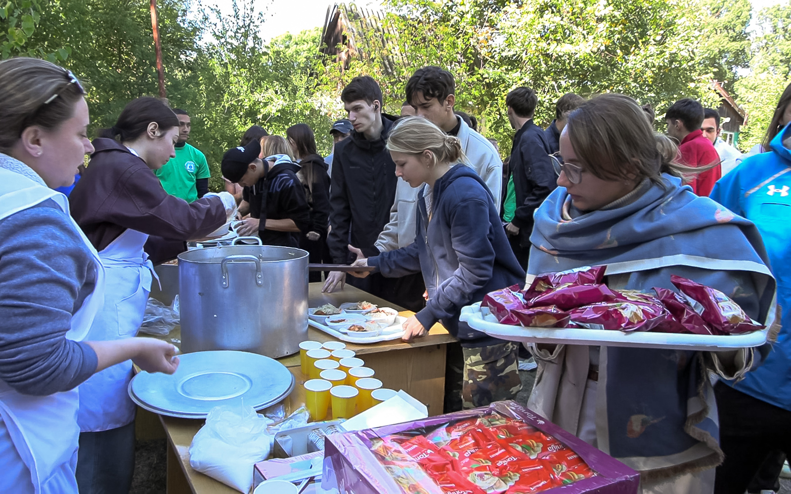 В обед участников слёта ждали вкусная гречка с мясом, салатом и горячий чай с круассанами, приготовленные студентами 3 курса Бендерского политехнического института.