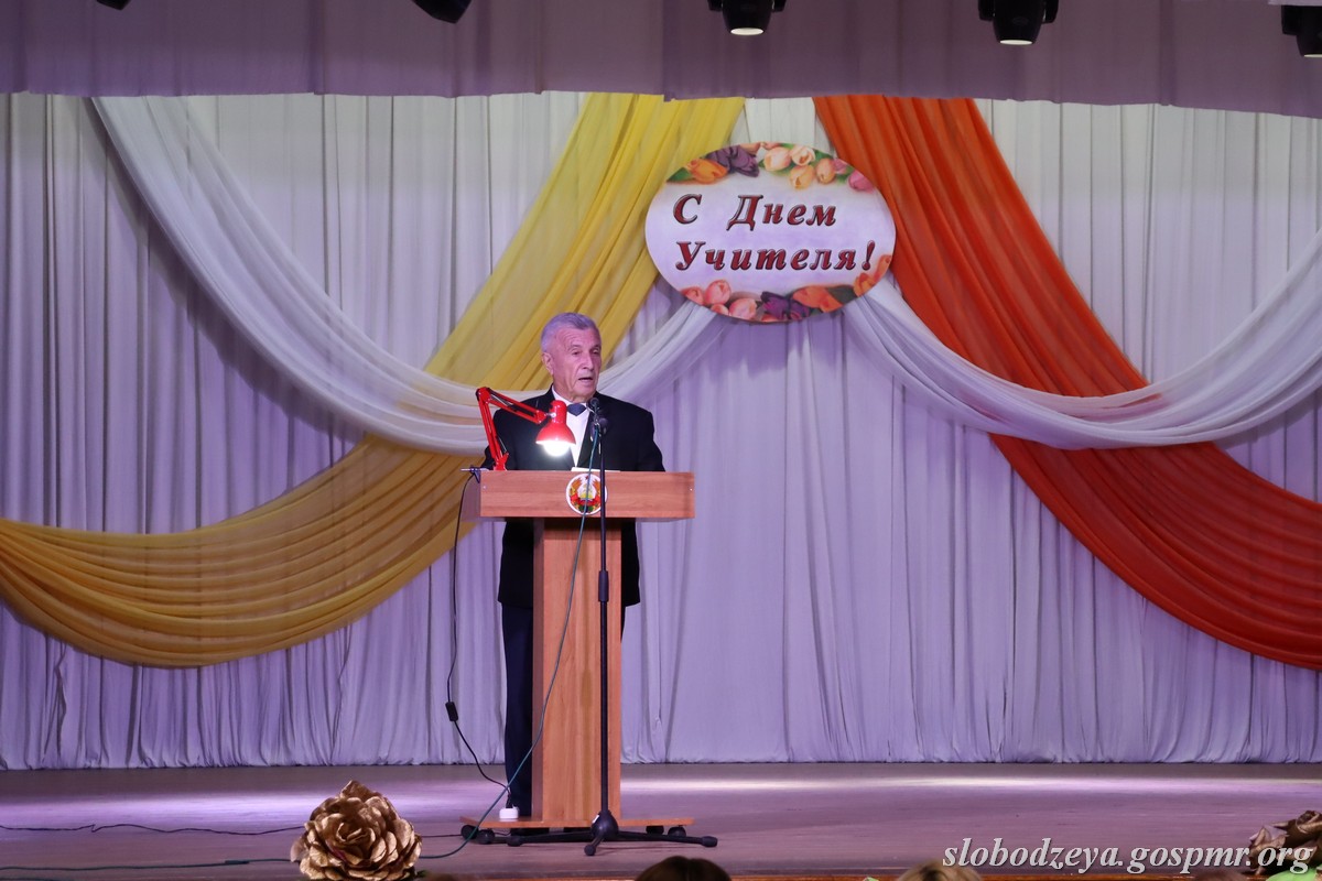 В Слободзее в районном Доме культуры собрались педагоги из всех населённых пунктов района. Поздравить их прибыли руководители госадминистрации и райгорсовета Василий Тищенко и Татьяна Залевская, заместитель министра просвещения ПМР Наталья Солдатова, депутат Верховного Совета ПМР Павел Шинкарюк.