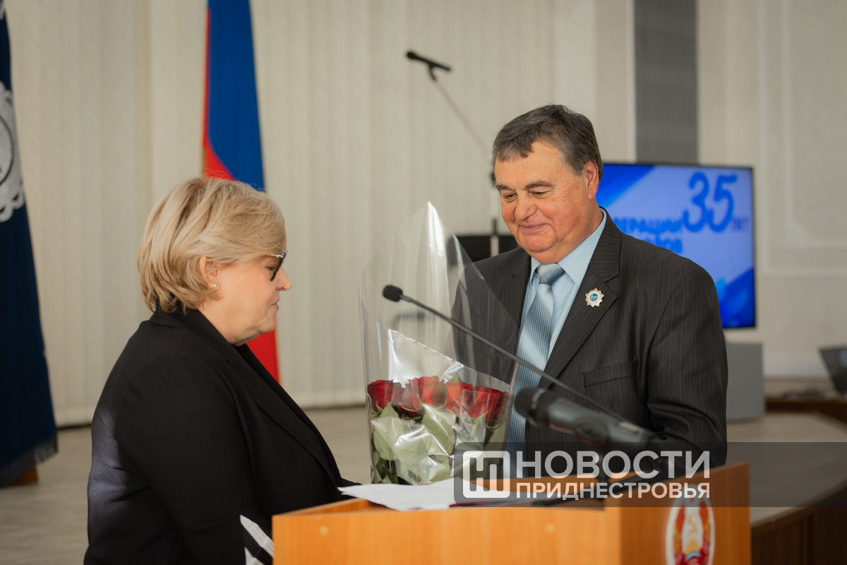 Федерации профсоюзов приветственный адрес направил Президент ПМР Вадим Красносельский. Поздравление зачитала государственный советник главы государства Анна Волкова.