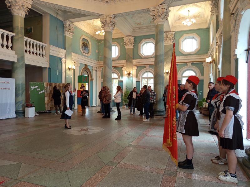 Участники прочли клятву пионеров, после чего им повязали символические красные галстуки.