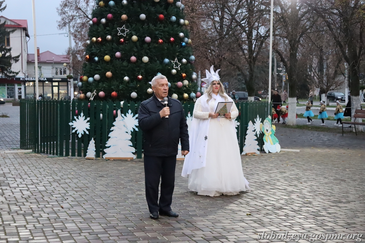 Глава районной госадминистрации Василий Тищенко поздравил жителей с приближающимися зимними праздниками, подчеркнув, что ёлка традиционно символизирует наступление Нового года. Он также выразил надежду на то, что 2026 год принесёт больше радости, благополучия и мира.