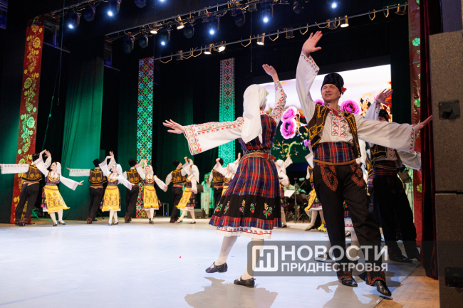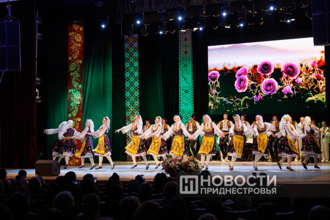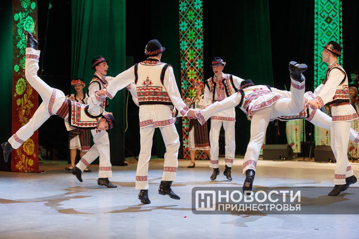 Праздничный вечер открыла «Хора сатулуй». Зрителям показали молдавскую хореографию во всей её красоте – яркие костюмы, отточенные движения, национальная музыка словно перенесли на юг Приднестровья, где зародился этот танец.